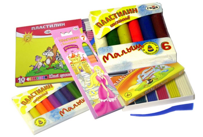Нынешний пластилин практически ничем не отличается от того, что был раньше. Цена – доступная. В продаже есть наборы, имеющие палитру из 18 цветов. Такой пластилин достаточно «липкий» надежно скрепляет разнообразные фигурки, сделанные из него. Однако есть и недостатки. Пластилин не достаточно пластичен. Перед использованием его необходимо хорошо размять руками. Поэтому такой пластилин не рекомендуется детям от 1 до 3 лет, т.к. им будет не под силу его разминать. Совсем недавно появился новая разновидность – восковый и скульптурный пластилин. Такой вид материала для лепки, за счет добавления воска и глины, является более мягким, чем обычный пластилин, поэтому его могут использовать даже малыши.