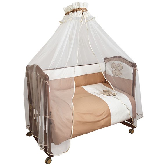 Комплект 7 предм "Заяц" 120х60 сатин одеял 140*110 подуш 40*60 навол пододеял прост балдахин - сетка 400х185 борт 4 част