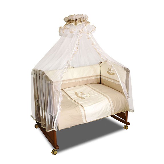 Комплект 7 предм "Лошадка"120*60 сатин одеял 140*110, подуш 40*60 навол пододеял прост балдахин -сетка 500х180 борт 4 ча