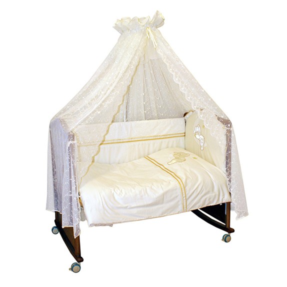 Комплект 7 предм "Лунный зай" 120*60 сатин 140*110, подуш 40*60 навол пододеял прост балдахин -кружев полот 500х180 борт