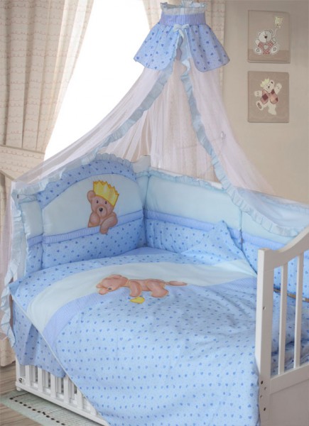Комплект в кроватку для новорожденного Мишка-Царь 8 предметов, Золотой Гусь, это высокое качество, 100% хлопок, наполнитель холлофан! Материал комплекта в кроватку обладает антибактериальными свойствами и не вызывает аллергию.