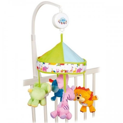 Музыкальная карусель Веселое сафари легко крепится на кроватку. Красочные и мягкие плюшевые игрушки в виде зебры, жирафа, льва и слона привлекут внимание ребенка, а также будут способствовать развитию зрения и координации движений. Малыш изучит новые звуки, формы и цвета. Приятная мелодия музыкальной шкатулки успокоит ребенка и поможет ему заснуть. Подвесные игрушки можно отсоединить и играть ими отдельно.