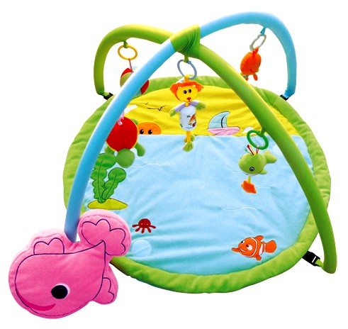 Развивающий коврик для новорожденного способствует развитию восприятия цветов и форм, фактур, размеров и звуков. Игрушки подвески - гремят, пищат и отлично развивают хватательный рефлекс у малыша.