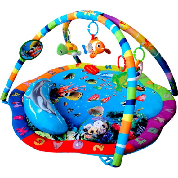 Развивающий коврик Жирафики Подводный мир создан специально для детей возрастом от 0 до 1 года. Он изготовлен из высококачественных безопасных материалов, имеющих разную структуру, что позволяет развить у ребенка тактильные ощущения. Коврик оснащен мягкими съемными дугами. Игрушки в коврике можно менять.