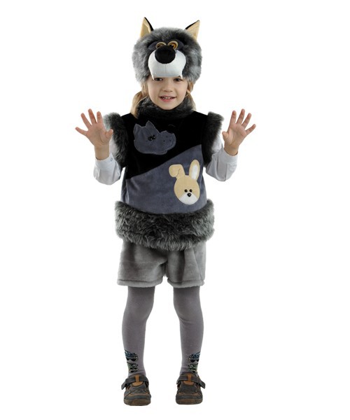 Комплект: маска-шапочка на резинке, жилетка с аппликацией и меховой оторочкой, шорты с хвостиком