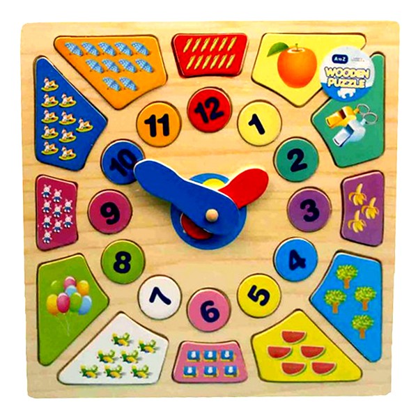 Этот пазл познакомит ребенка с двумя стрелками - часовой и минутной. Каждая цифра на этих часах - это один из элементов пазла; можно вытащить все цифры, а затем их снова соединять.