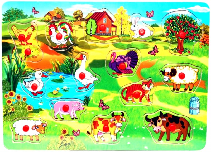 Учите с малышом домашних животных? Вкладыши Домашние животные на ферме помогут в изучении. Познакомьте ребенка с животными живущими в деревне.