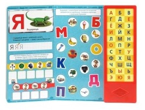 Писать в книге можно фломастерами на водной основе, стирая потом написанное влажной тряпочкой. А нажимая на кнопки, ребенок услышит правильное произношение букв и слов начинающихся с нее.