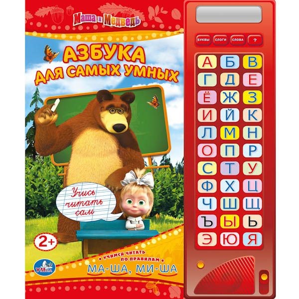 Уимся быстро читать сами и по правилам! Говорящий букварь привлечёт малыша своими любимыми героями - Машей и Медведем,а также станет любимой книжкой и настоящим первым букварём.