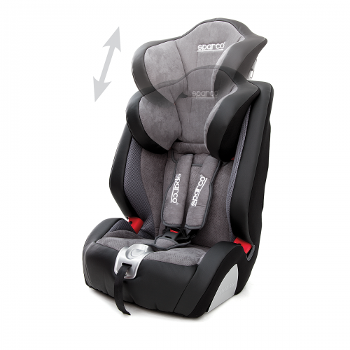 Преимуществом автокресла Sparco F 1000 K является большой внутренний объем, позволяющий разместить в нем ребенка любой комплекции, а также система откидывания за счет выдвигаемого из-под сидения упора.