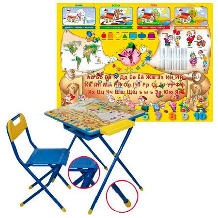 Поверхность столешницы ламинированная, что позволяет стол легко чистить. Яркий рисунок поможет малышу изучить буквы и цифры. Набор мебели Дэми легко складывается и не занимает много места в квартире.