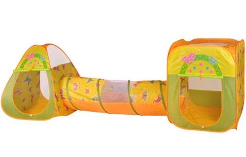 Яркий игровой дом с тоннелем Бабочки +100 шаров выполнен в желтой расцветке. Игровой тоннель отлично подойдет для сюжетно-ролевых игр и в нем можно играть в прятки. А еще игровой тоннель это уютное место и "личный домик" малыша.